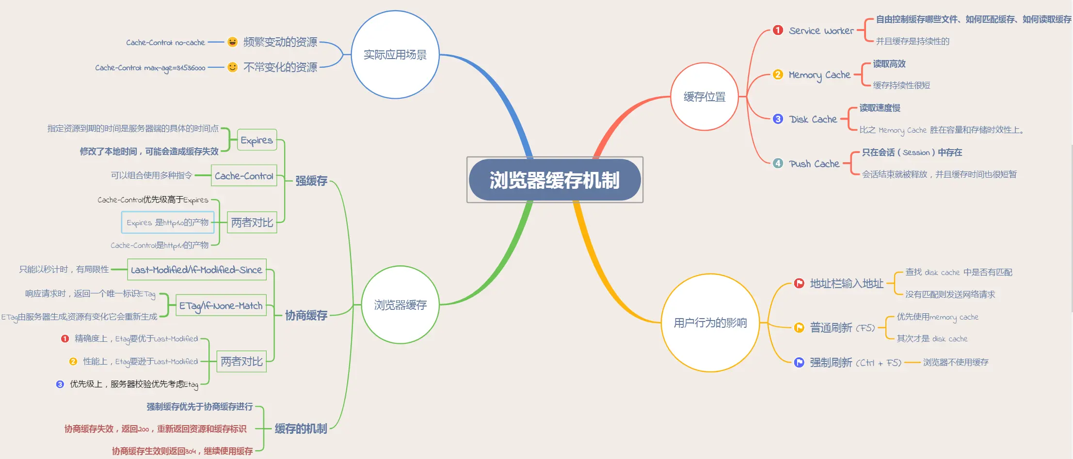 普通刷新 (F5):因为 TAB 并没有关闭,因此 memory cache 是可用的,会被优先使用(如果匹配的话)。其次才是 disk cache。