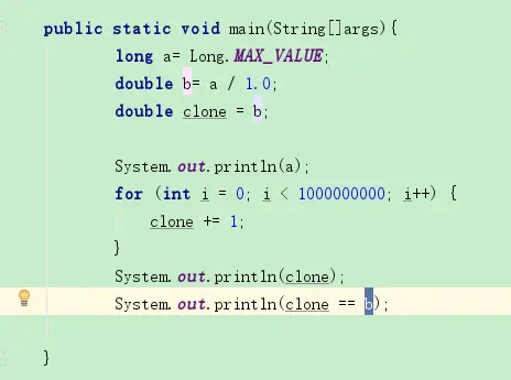 long的最大值是2的64次方减1,需要63个二进制位表示,即便是double,52位的尾数也无法完整的表示long的最大值。不能表示的部分也就只能被舍去了。所以导致了添加了10亿次之后,数值依然没有变化,因为添加的数值都被舍去了。
