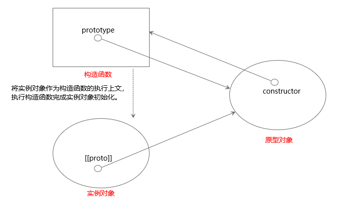 通过构造函数生成的实例对象拥有一个指向该构造函数原型对象的的指针,在ES5中被称为[[proto]],ES6中称为__proto__。在通过构造函数创建对象的过程中,实质上就做了两件事:1、将实例对象的[[proto]]属性指向构造函数prototype属性指向的对象;2、将实例对象作为构造函数的执行上下文,执行构造函数完成初始化。一旦实例对象构建完毕,跟原有的构造函数不再有什么关系,即使可以将实例对象以构造函数名称分类也是通过原型对象来判定的。