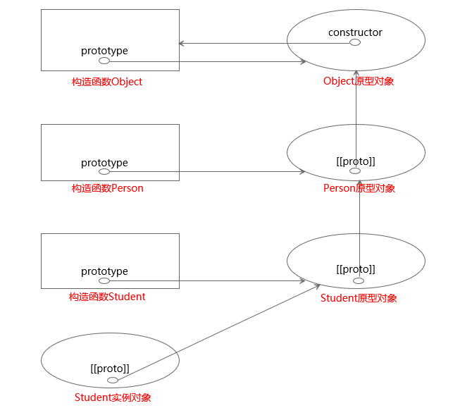 构造函数、原型对象、实例对象三者的关系如下图所示: