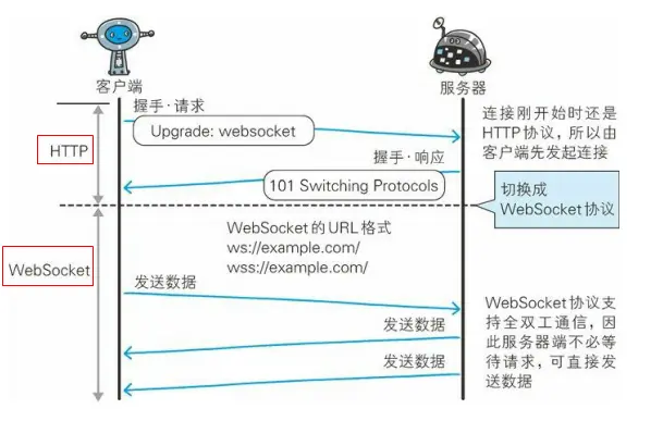 一旦Web服务器与客户端之间建立起WebSocket协议的通信连接之后所有的通信都依靠这个专用协议进行。 由于WebSocket是建立在HTTP基础上的协议,因此连接的发起方仍是客户端,而一旦确立WebSocket通信连接,不论服务器还是客户端,任意一方都可直接向对方发送报文。