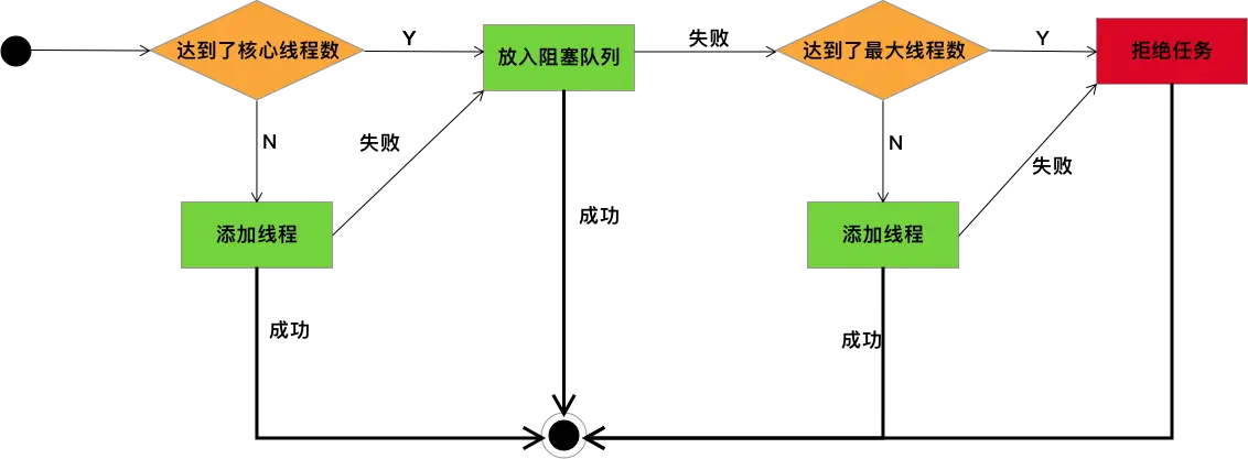 // 如果添加线程失败(如已经达到了最大线程数),则拒绝任务