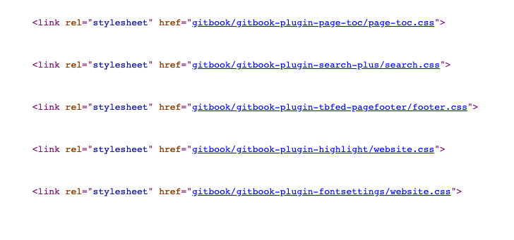 css很简单,因为不同的gitbook page使用到的css文件都是一样的,可以复制下来保存到本地的文件,之后从文件中读取就行。
