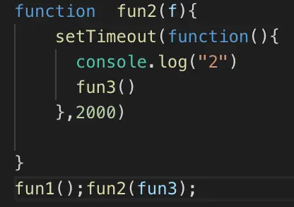 当我们希望输出1,2,3时,fun3输出的顺序依赖fun2时,我们可以把fun3作为fun2的回掉函数