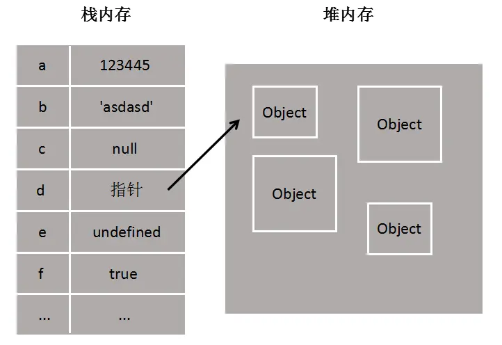 我们常说的值类型和引用类型其实说的就是栈内存变量和堆内存变量,再想想值传递和引用传递、深拷贝和浅拷贝,都是围绕堆栈内存展开的,一个是处理值,一个是处理指针