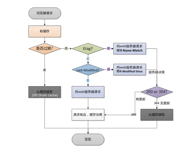 浏览器再次请求服务器的时候,请求头会包含此字段,后面跟着在缓存中获得的最后修改时间。服务端收到此请求头发现有if-Modified-Since,则与被请求资源的最后修改时间进行对比,如果一致则返回304和响应报文头,浏览器只需要从缓存中获取信息即可