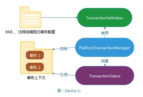 Spring 事务管理 SPI ( Service Provider Interface )抽象模型层主要包括 3 个接口: