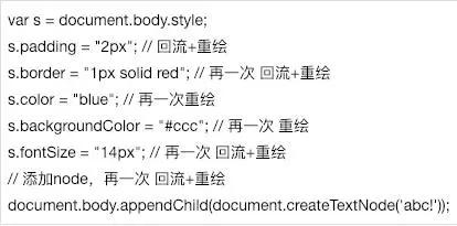 减少对DOM元素的查询和修改,查询时可将其赋值给局部变量。