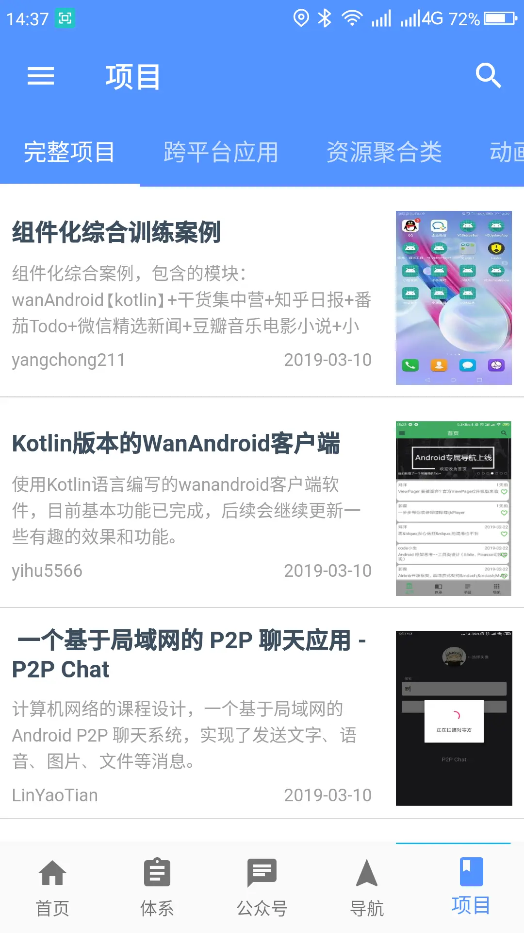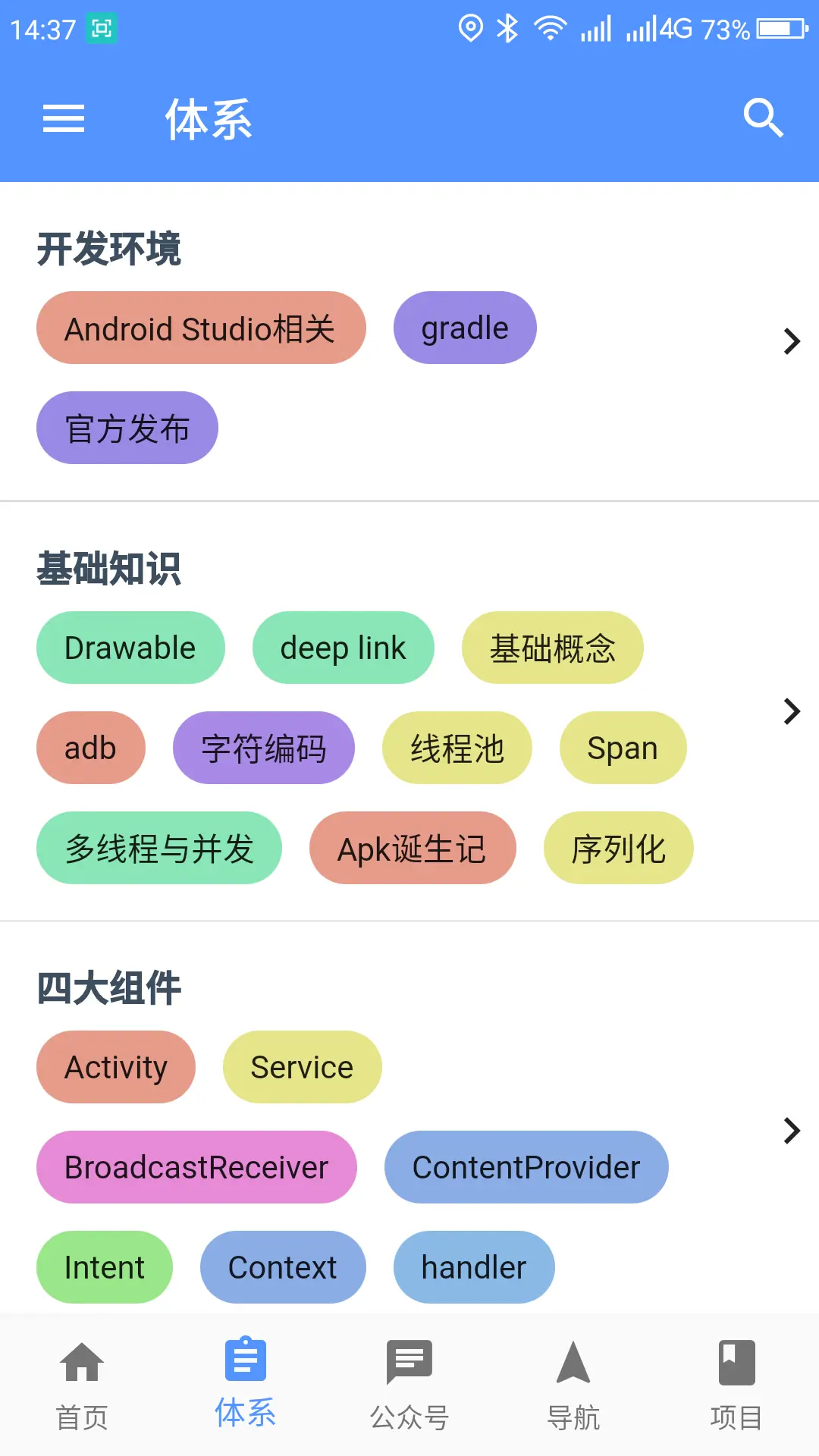 - 项目首页、知识体系、公众号、导航、项目、各个页面,和详情页面