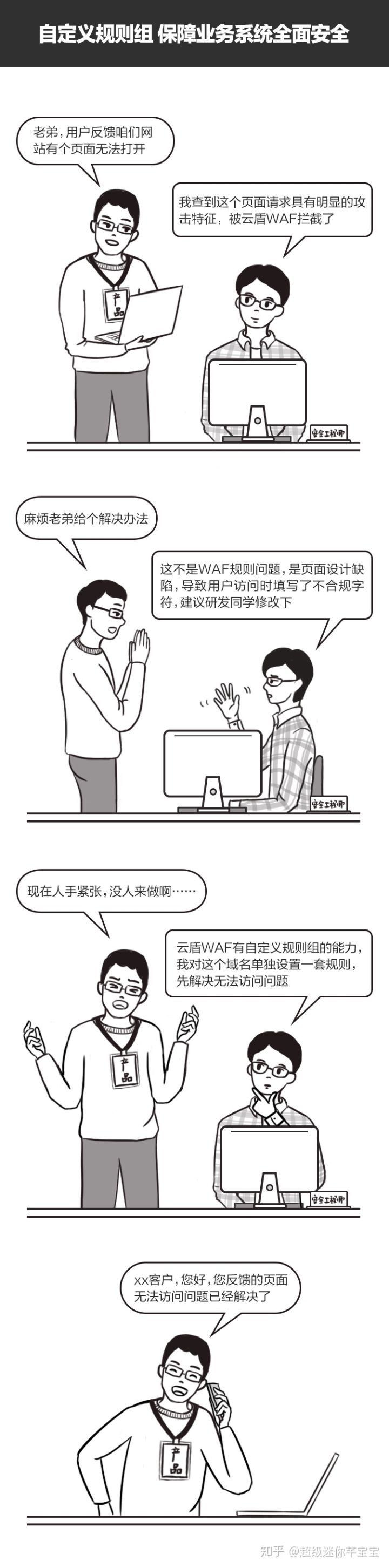 在第一期“漫说安全”栏目中,我们用四格漫画的形式介绍了基于深度学习的阿里云WAF到底智能在哪里,能帮客户解决什么问题。