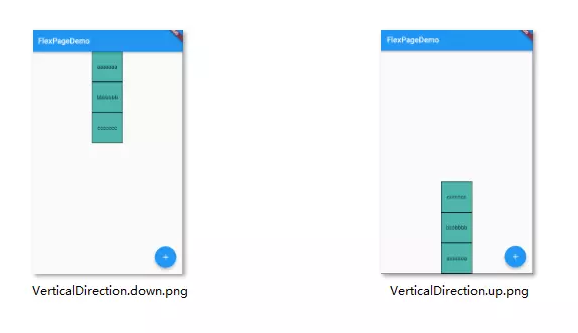//CrossAxisAlignment是垂直的,默认起始位置在中间,排列方向为从上至下,此时可以通过verticalDirection来改变CrossAxisAlignment的起始位置及排列方向