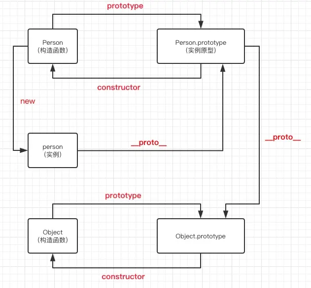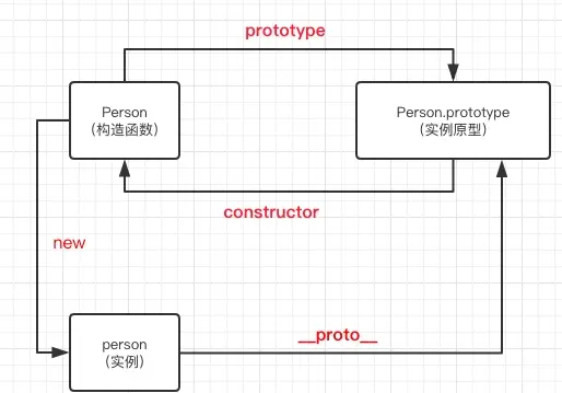 __proto__属性,指向原型,也就是指向其构造函数的 prototype。 - 原型的 constructor 属性,都指向关联的构造函数。