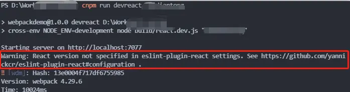在git_carvip项目升级React到16.8.0版本,运行npm run devreact laidiantong的时候,会发现有一句警告提示,Warning: React version not specified in eslint-plugin-react settings. See github.com/yannickcr/e… 。如图: