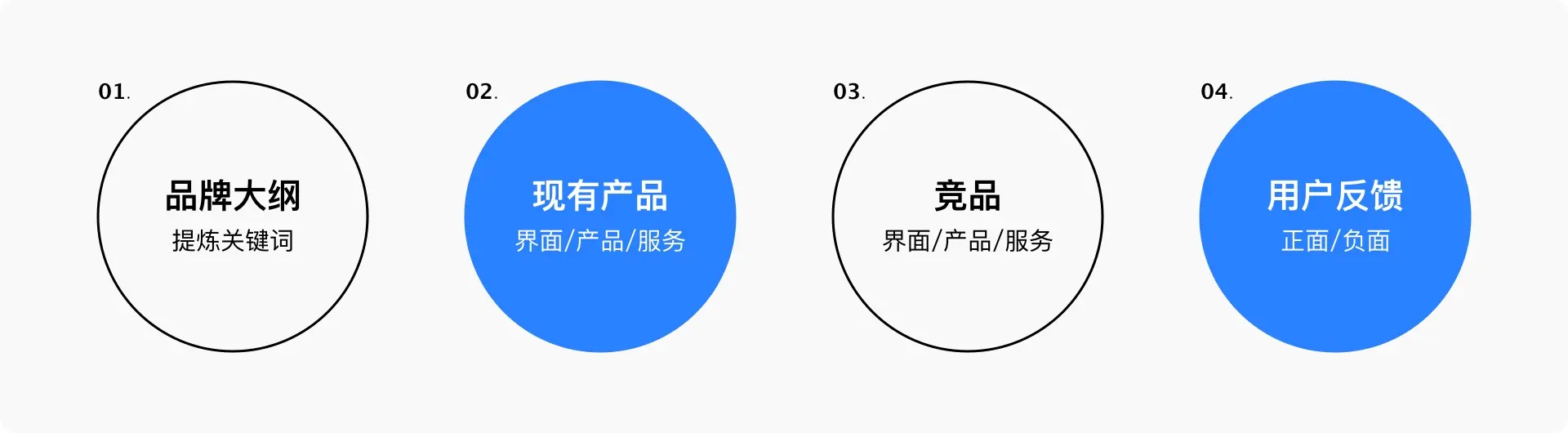 Alan Cooper在《About face 4》中提到,在传达品牌调性时,可以用一组形容词来描述产品及体验,这些词可以组成词云,用来指导视觉设计。如何创建这组词云呢,Allan Cooper提供了四个方法:从品牌大纲提炼关键词、分析现有产品的界面和服务、分析竞品的界面和服务、收集用户反馈。