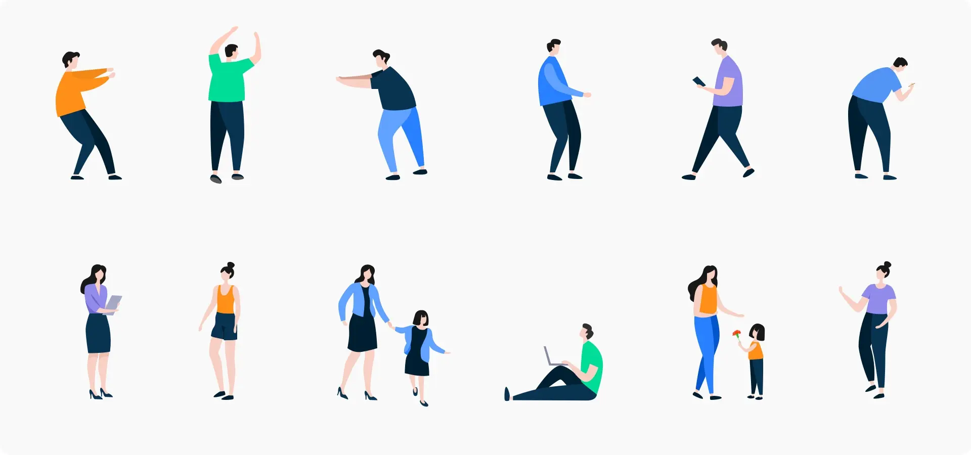 我们希望重点展示的是人物的珍贵回忆,基于此,我们设计了一批角色,讲述角色的故事,让用户产生代入感。为了保证统一性,我们制定了人物的细节规范,包括觉额色头身比=1:9、服装款式以休闲为主、服饰颜色与品牌色呼应等。