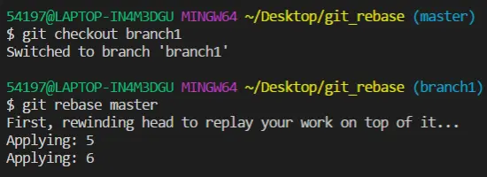 此时,我们的主分支Master上有1、2、3、4 四个文档,branch1分支上则是1、2、5、6 四个文档,接下来执行我们的合并操作。