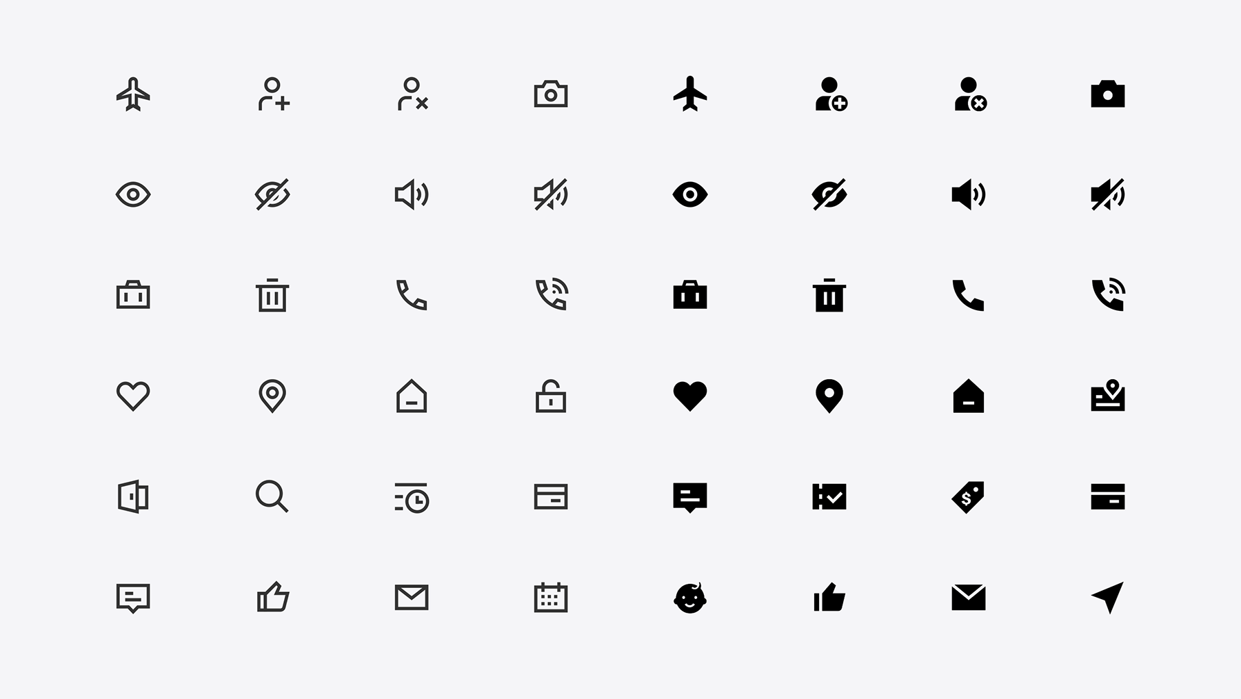 图标的样式也是通过提取logo中的细节重点来确定和制作的,如下图所示,整组图标都是根据logo元素和统一制定的规则来制作完成的。