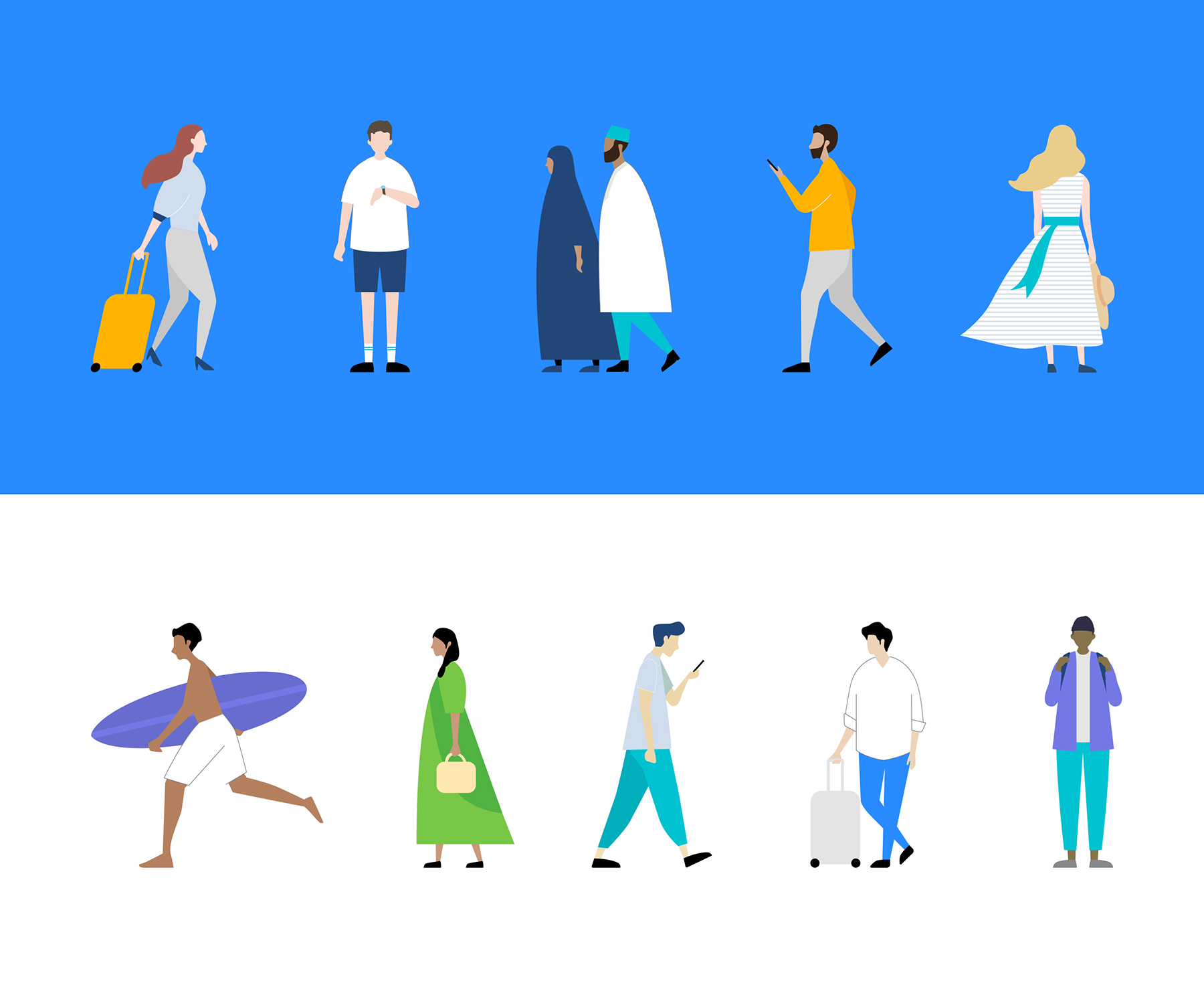 正是因为Trip.com针对的是全球用户,我们采用的插画正是代表着生活在不同国家/地区,拥有不同种族和国籍,说着不同的语言的来自世界各地的不同的独特的个体。