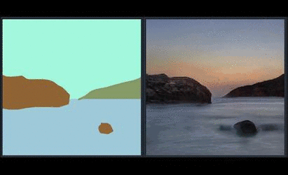 GauGAN 允许用户绘制自己的分割图并操纵场景,用沙、天空、海或雪等标签标注每个分割块。