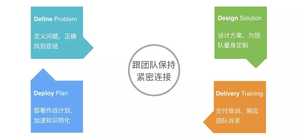 - 定制化调整。针对团队的真实情况做适当的定制化,并做好在交付的过程响应变化的准备。