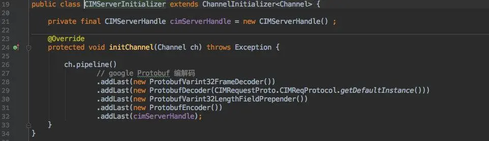 从 pipline 中可以看出使用了 Protobuf 的编解码(具体报文在客户端中分析)。