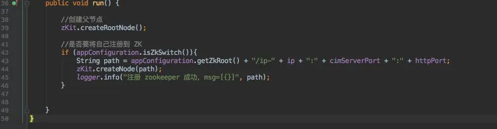 所以在应用启动成功后需要将自身数据注册到 Zookeeper 中。