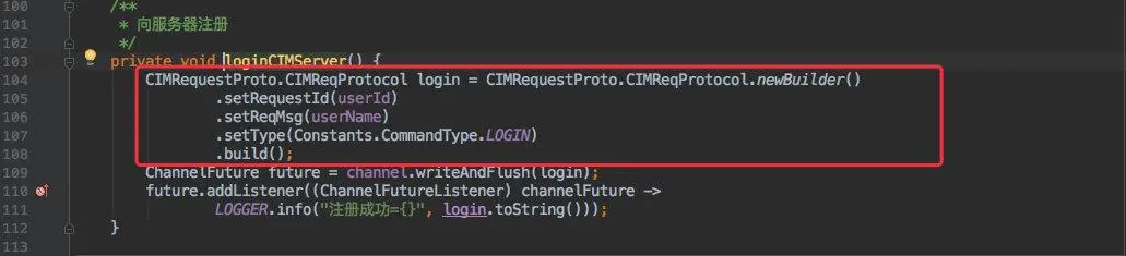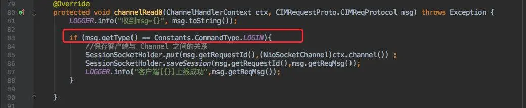 最后一步就是发送一个登录标志的信息到服务端,让它保持客户端和 Channel 的关系。