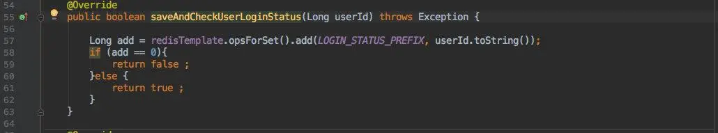 为了实现只能一个用户登录,使用了 Redis 中的 set 来保存登录信息;利用 userID 作为 key ,重复的登录就会写入失败。