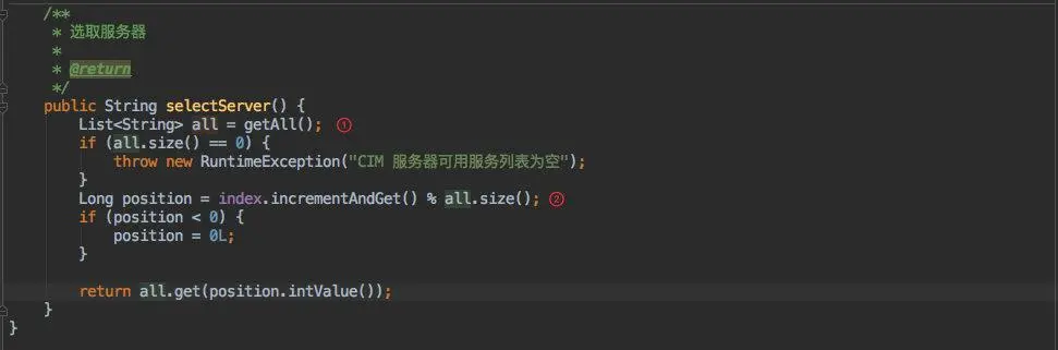 - 登录成功后需要从 Zookeeper 中获取服务列表(cim-server)并根据某种算法选择一台服务返回给客户端。