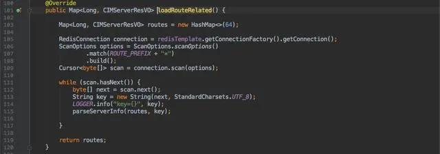 由于 Redis 单线程的特质,当数据量大时;一旦使用 keys 匹配所有 cim-route:* 数据,会导致 Redis 不能处理其他请求。