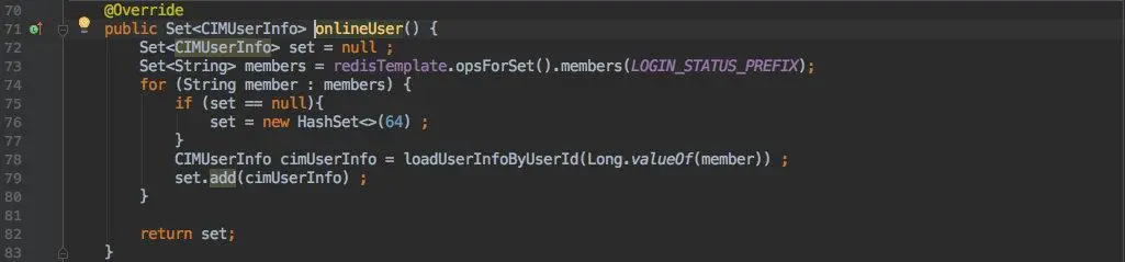 实现也很简单,也就是查询之前保存 ”用户登录状态的那个去重 set “即可。