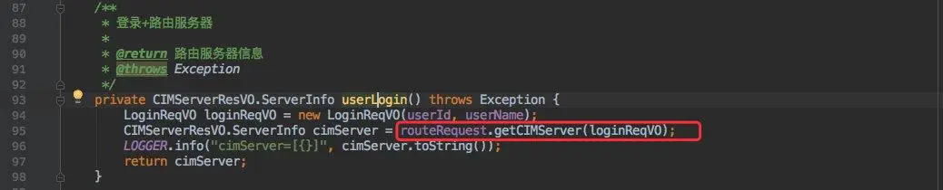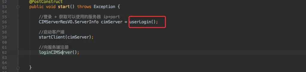 第一步也就是登录,需要在启动时调用 route 的登录接口,获得 cim-server 信息再创建连接。