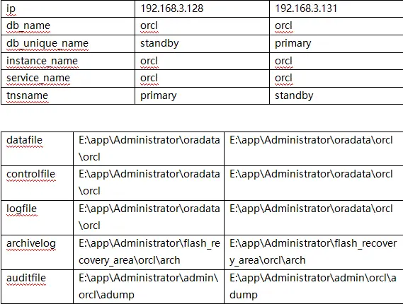 说明:服务器环境为VM搭建的两台虚拟机,操作系统为Windows Server 2008 R2,数据库为Oracle11gR2,安装目录实例名全部相同,archivelog下的arch文件夹为手动创建。