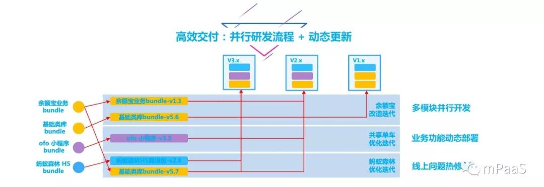 这也正是我们基于 mPaaS 做的对外输出。支付宝这套框架不止是支付宝自己用,也需要快速赋能我们的合作伙伴,大家都是统一的架构底层,支持业务之间的灵活联动和快速扩张,这也是前面提到的超级 App 的技术特点。