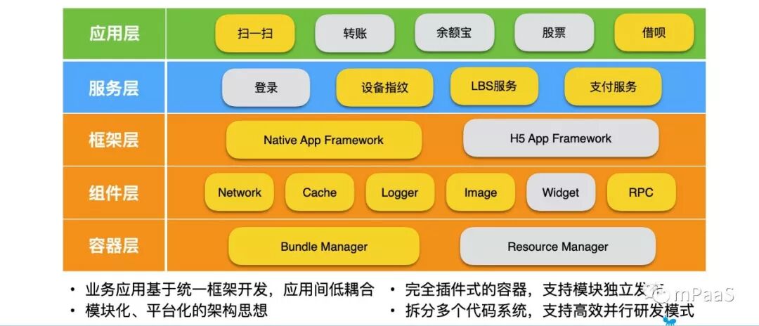 针对支付宝在超级 App 方面方向下的架构优势,我们总结了如下特点: