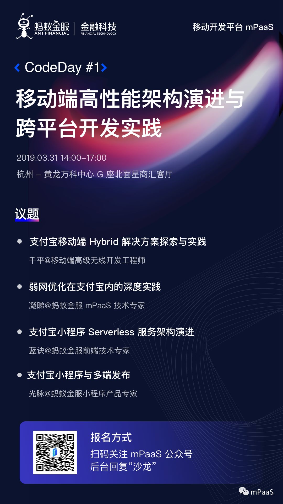 | mPaaS 第一期线下沙龙 CodeDay#1 开放报名中: