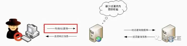我们会发现SQL注入流程中与正常请求服务器类似,只是黑客控制了数据,构造了SQL查询,而正常的请求不会SQL查询这一步,SQL注入的本质:数据和代码未分离,即数据当做了代码来执行。