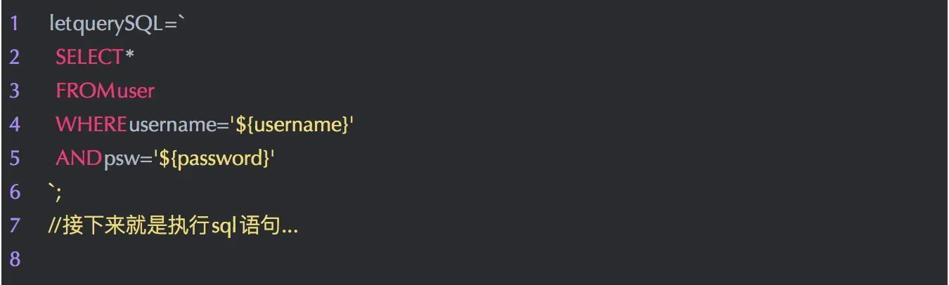 SELECT * FROM user WHERE username='admin' --' AND psw='xxxx'在 SQL 中,' --是闭合和注释的意思,-- 是注释后面的内容的意思,所以查询语句就变成了: