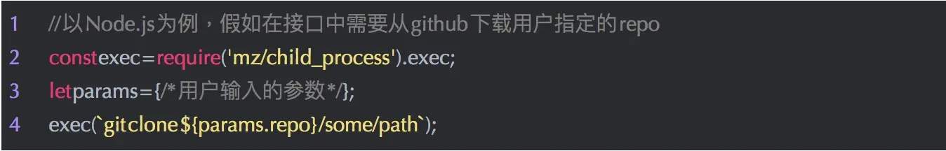 但是如果 params.repo 传入的是 https://github.com/xx/xx.git && rm -rf /* && 恰好你的服务是用 root 权限起的就糟糕了。