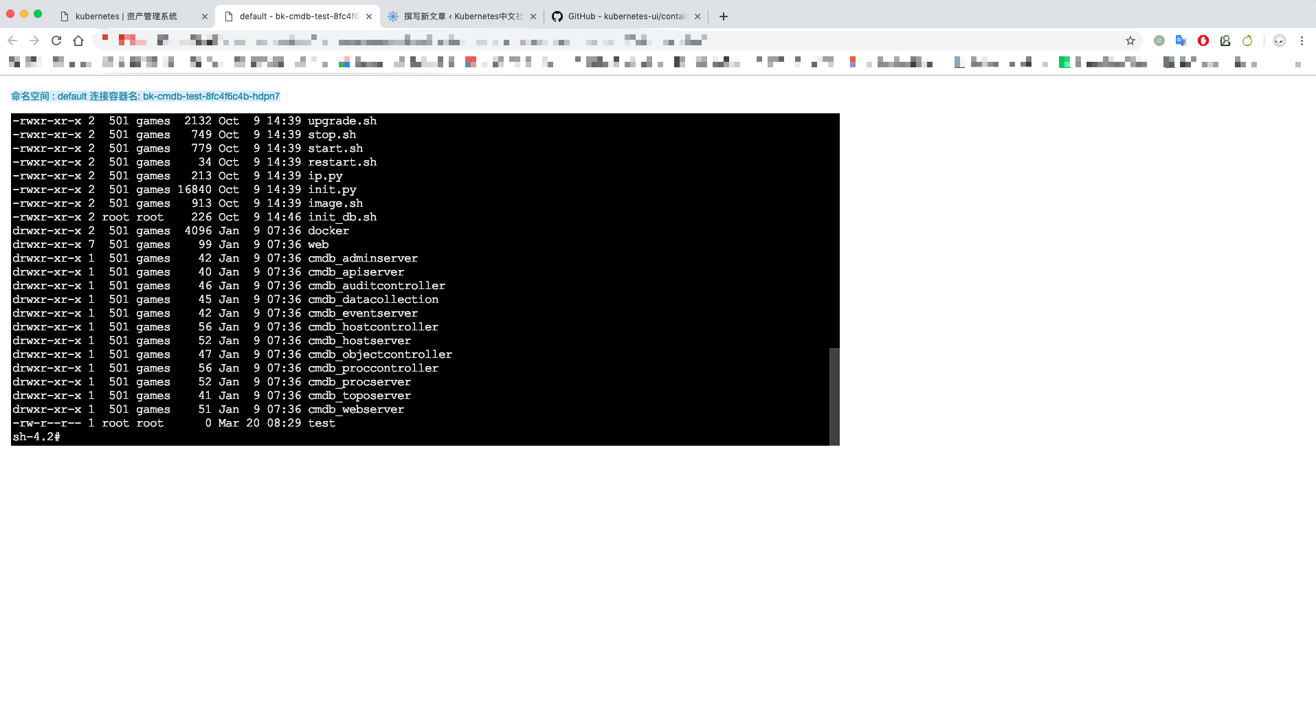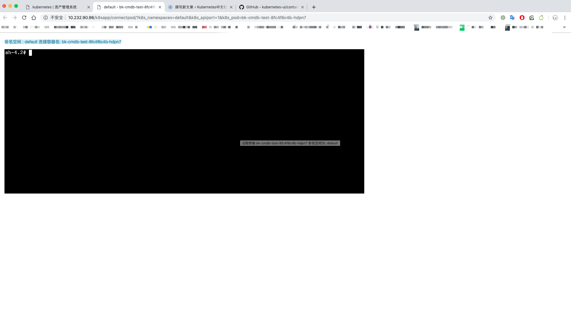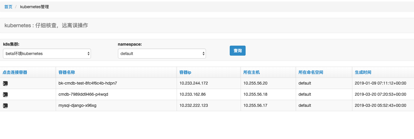 基本思路,django编写页面,通过api调用获取kubernetes的部署情况,列出pod信息,然后根据pod信息埋点url,点击跳转到ssh docker的页面,通过嵌套 github.com/kubernetes-… 实现登录到docker。