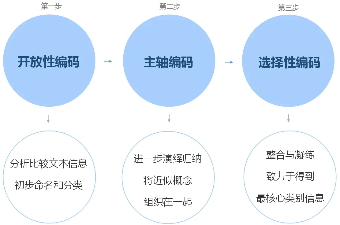 5、 若要形成用户体验旅程图,主轴编码则是二级行为,选择性编码就是一级行为,开放性编码可以提供与问题点相关的功能模块信息。频率则体现机会点的重要程度。