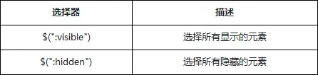 元素有显示状态与隐藏状态,jQuery根据元素的状态扩展了可见性筛选选择器:visible与:hidden。