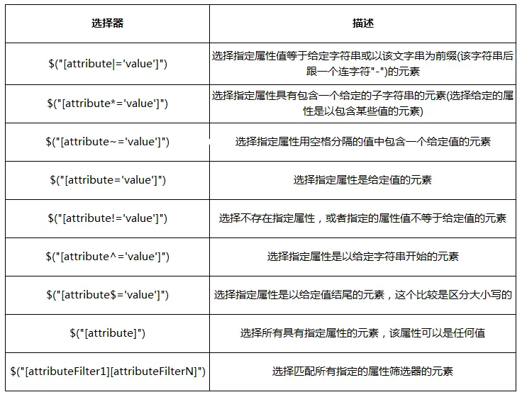 在这么多属性选择器中[attr="value"]和[attr*="value"]是最实用的 [attr="value"]能定位不同类型的元素,特别是表单form元素,如input[type="text"],input[type="checkbox"]等 ,[attr*="value"]能在网站中帮助我们匹配不同类型的文件。