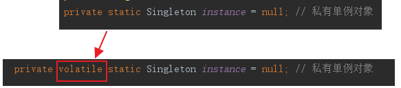 如何去防止呢,很简单,可以利用关键字 volatile 来修饰 instance 对象,如下图进行优化: