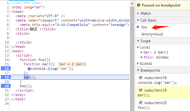 然后就是bar执行完毕,bar执行上下文出栈,foo执行上下文出栈,页面关闭,全局执行上下文出栈。
