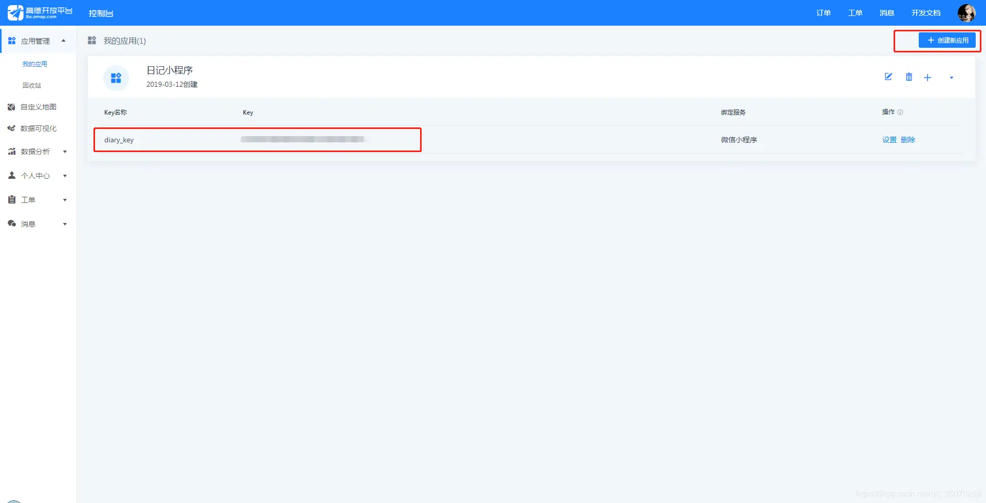 (2)、首先获取使用相关api需要的key值,如下: