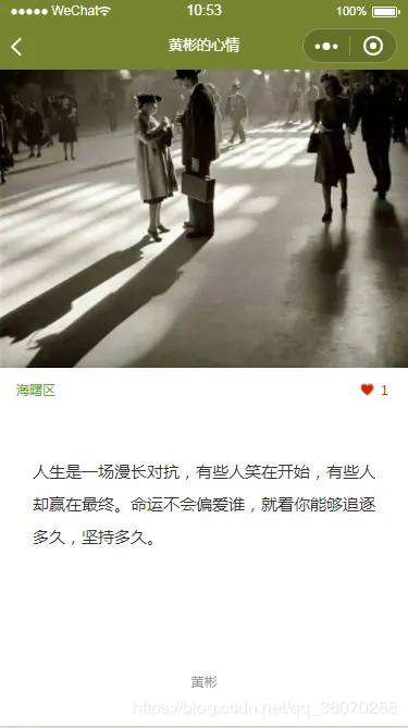闲暇之余,听媳妇嘀咕说要给她做一个能表达她每日心情的小程序,只能她在上面发东西。既然媳妇发话了,就花点心思做一个吧,因为没有UI图,所有布局全靠自己瞎编,内容略长,感兴趣的可以一览。
