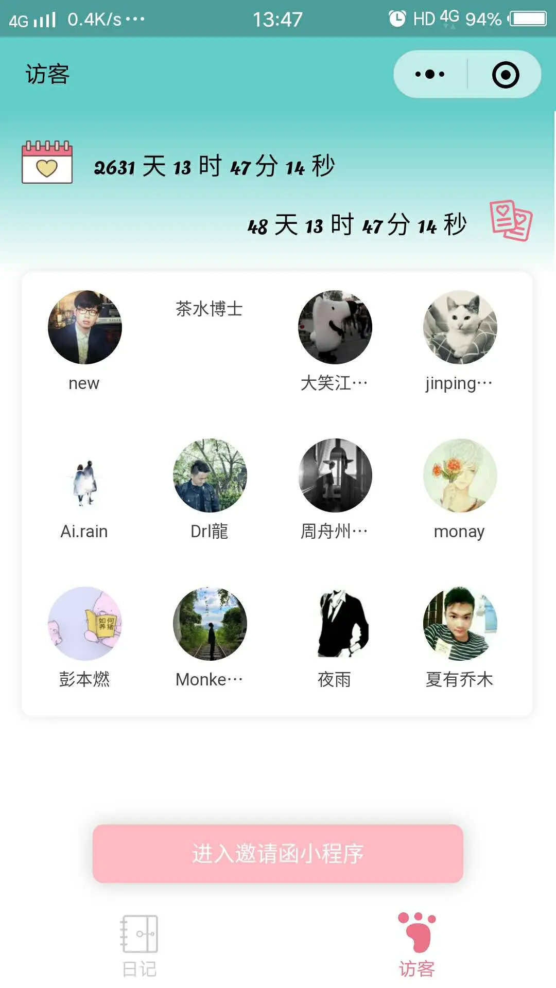 由于媳妇不希望别人看到她写的内容,已隐藏通过小程序名搜索该小程序,大家如果想实现类似功能请参照源码,经过访客可查看数量限制后,这里放开体验二维码: