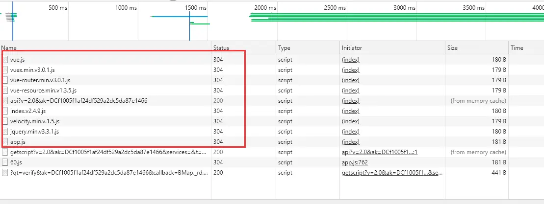 5、优化后的浏览器加载效果,全部是独立加载各自的js文件,可以利用浏览器的缓存机制