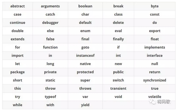 关键字也称保留字,是被JavaScript征用来有特殊含义的单词